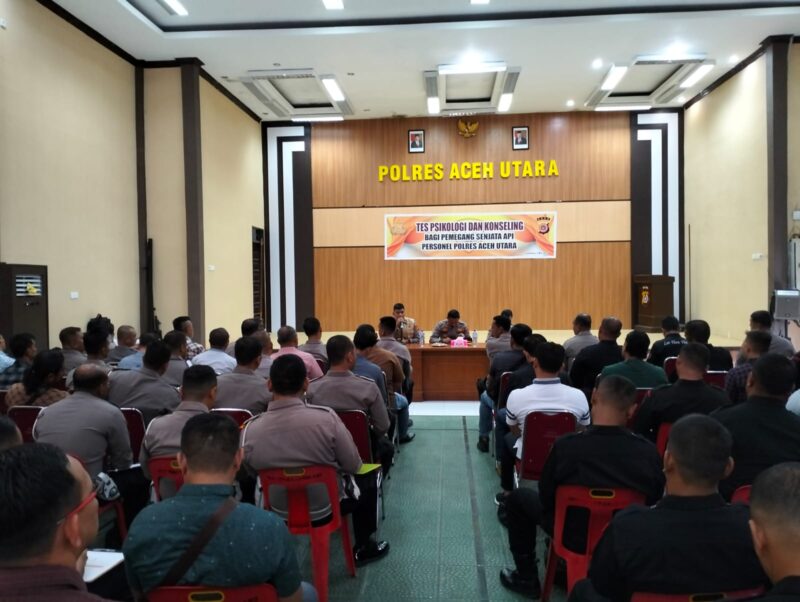 Kabag SDM Polres Aceh Utara AKP Ildani Ilyas, S.H., M.H., melalui Kasi Humas Iptu Bambang kepada wartawan mengatakan, tes psikologi dan konseling psikologi ini ialah sebagai salah satu bentuk syarat setiap personel Polri untuk pemegang senjata api (Senpi) dinas.