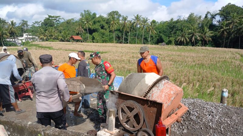Thetime.my.id||Blitar – Babinsa Desa Ploso Posramil Selopuro Koramil 0808/12 Wlingi Serda Eko Prayitno, bersama warga melaksanakan kegiatan gotong royong merabat (mengecor) jalan menuju pemakaman umum di Dusun Ploso RT. 01 RW. 01 Desa Ploso Kecamatan Selopuro, Minggu (26/4/2026).