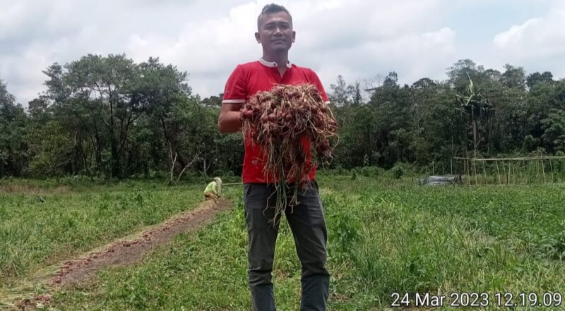 Hasil panen perdana Bawang Merah yang dilakukan petani Bulu Bolon, Jum’at (24/3/2023), cukup memuaskan para anggota kelompok tani.