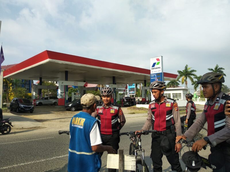 Lhokseumawe.Thetime23.com. Personel Sat Samapta Polres Lhokseumawe melakukan patroli dengan menggunakan sepeda di wilayah kota setempat. Ini guna mengantisipasi aksi premanisme dan gangguan Kamtibmas, Sabtu (18/3/2023).