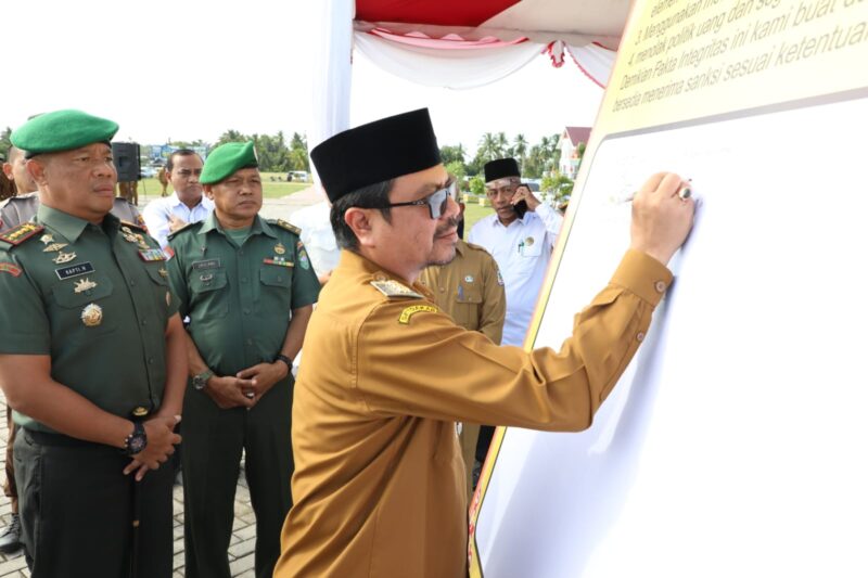 Pada kesempatan itu, Penjabat Bupati Azwardi, AP, MSi, membacakan ikrar berisi poin-poin tentang netralitas ASN dan non ASN dalam pelaksanaan Pemilu 2024. Terdapat empat poin yang menjadi pokok-pokok netralitas ASN dan non ASN yang diikrarkan sebagai Pakta Integritas pada kesempatan itu, yaitu, satu, menjaga dan menegakkan prinsip netralitas Pegawai ASN dan non ASN dalam melaksanakan fungsi pelayanan publik, baik sebelum, selama maupun sesudah pelaksanaaan Pemilu dan Pemilihan tahun 2024.