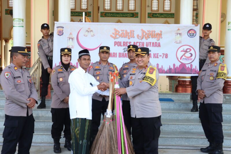 Wakapolres Aceh Utara mengatakan menjelang Hari Bhayangkara ke-78 pihaknya menggelar bakti religi. Salah satu kegiatannya yaitu kerja bakti membersihkan tempat ibadah yang ada di wilayah Kecamatan Lhoksukon.