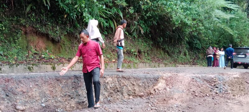 Dengan turunnya badan jalan sepanjang 15 m , sehingga tidak bisa dilalui oleh kenderaan roda 4 ke atas, Sebutnya. Senin, (24/2023).