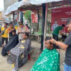 Lhokseumawe – Personel Polsek Muara Dua, Polres Lhokseumawe mengadakan pangkas rambut gratis bagi abang becak dan…