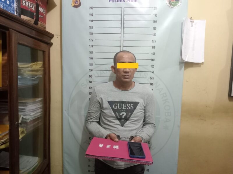 Sigli – Seorang buruh harian lepas, inisial MS (40) diamankan beserta Barang Bukti (BB) Narkotika jenis Sabu oleh Tim Opsnal Sat Res Narkoba Polres Pidie.