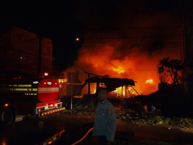 Lhokseumawe – Dua unit rumah semi permanen di Desa Mon Geudong, Kecamatan Banda Sakti, Kota Lhokseumawe terbakar. Seorang penghuni menderita luka bakar dalam peristiwa sekira pukul 04.30 WIB, pada Selasa (16/5/2023).