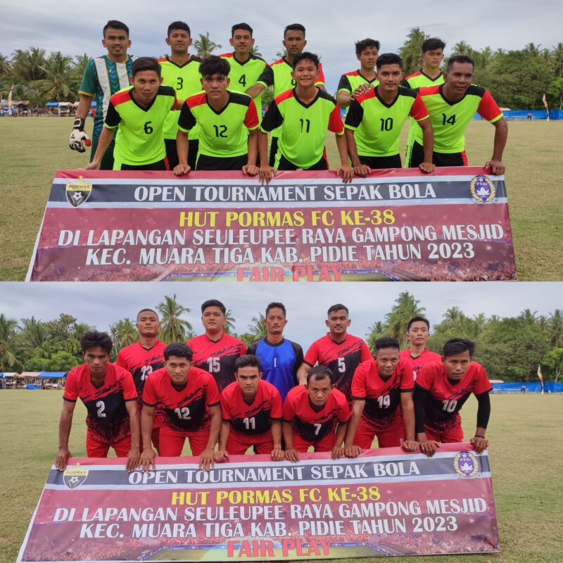 Sigli – Kesebelasan Gajah Seupak Gampong Sagoe Kecamatan Muara Tiga, Kabupaten Pidie, mampu mengalahkan BLB United Saree Aceh Besar 2-1 pada laga lanjutan Open Turnamen HUT Pormas ke 38 di lapangan Seuleupee Raya Gampong Mesjid Kecamatan Muara Tiga Kabupaten Pidie, Selasa, (5/9/2023).