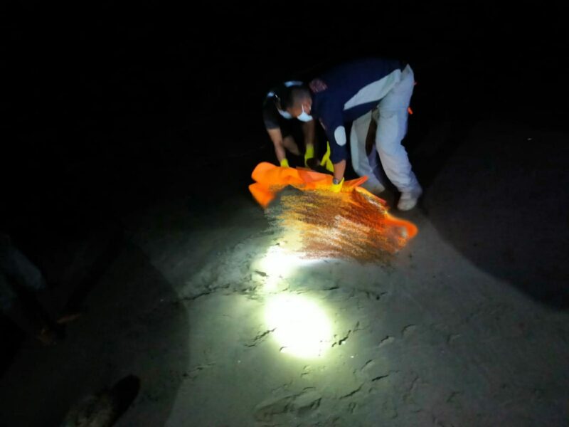 Dikatakan, saat ditemukan tubuh mayat sudah dalam kondisi hancur membusuk dan mengeluarkan bau menyengat, dengan posisi tertelungkup dan sebelah tubuhnya tertimbun pasir.