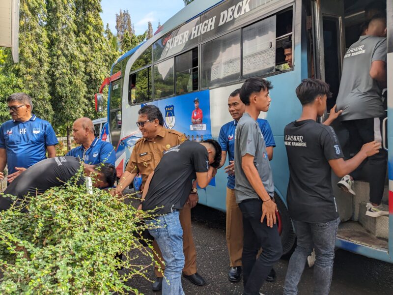 Keberangkatan para pemain dan ofisial PSAP dilepas Pj Bupati Pidie Ir Wahyudi Adisiswanto dan Sekda Drs Samsul Azhar di pendopo setempat, Senin, (6/11/2023).