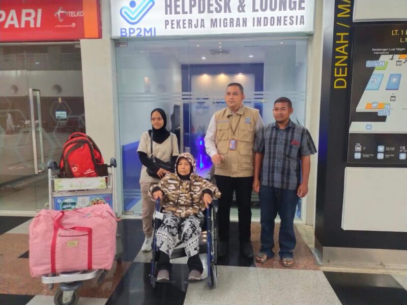 “Alhamdulillah BP3MI Aceh bekerja sama dengan BP2MI Sumatera Utara, akhirnya ibu Poniyem dijemput di Bandara Kuala Namu, Sumut, ibu tersebut tiba pada pukul 10. 45 WIB Rabu 16 Agustus 2023 yang juga hadir Staf Penghubung saya untuk Sumatera Fajri dan anak Ibu Poniyem Dedi Hardiyanto,” kata Haji Uma.