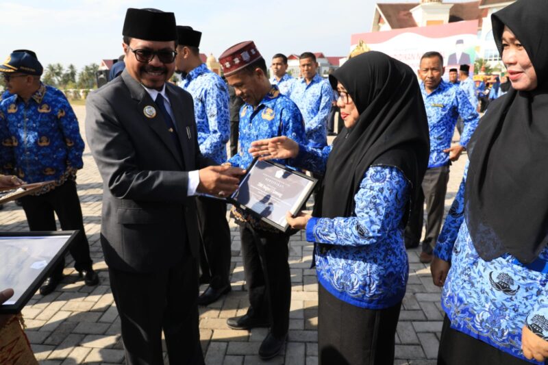 Bertindak sebagai Pembina Upacara Pj Bupati Azwardi, AP, MSi, kegiatan ini turut dihadiri oleh Sekda Dr A Murtala, MSi, para Staf Ahli Bupati, para Asisten, para Kepala SKPK, para Camat, dan Kabag Setakab, serta para Kepala Sekolah, para guru, dan para pimpinan organisasi profesi guru dan pegiat LSM pendidikan.