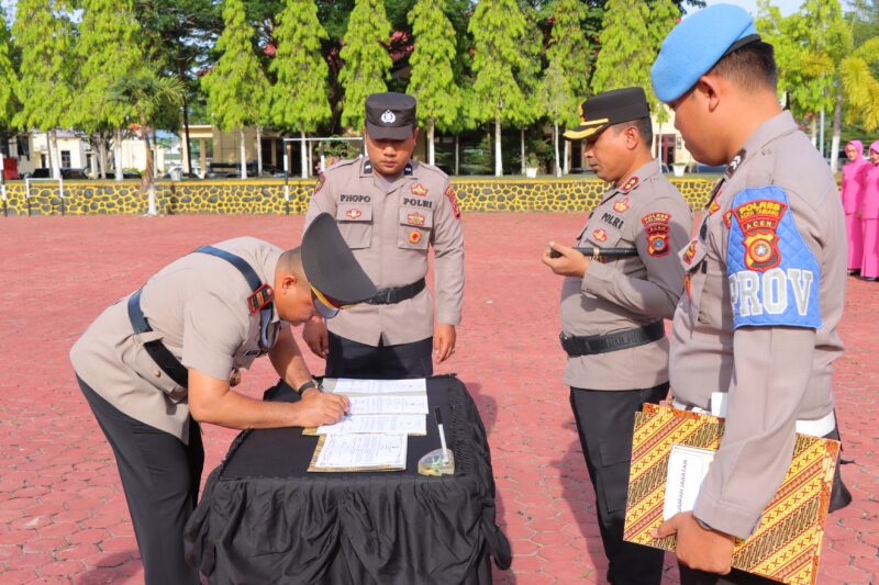Kegiatan Sertijab ditandai laporan pejabat yang baru, pembacaan sumpah dan penandatanganan berita acara dan fakta integritas oleh perwira yang dimutasi.