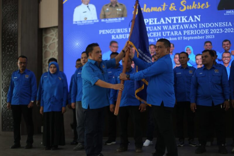Aceh Utara- Ketua Persatuan Wartawan Indonesia (PWI) Provinsi Aceh, Nasir Nurdin melantik pengurus PWI Aceh Utara periode 2023-2026, berlangsung di Aula Setdakab Aceh Utara sekaligus pelantikan pengurus Ikatan Keluarga Wartawan Indonesia (IKWI) Aceh Utara oleh IKWI Aceh, Kamis (7/9/2023).