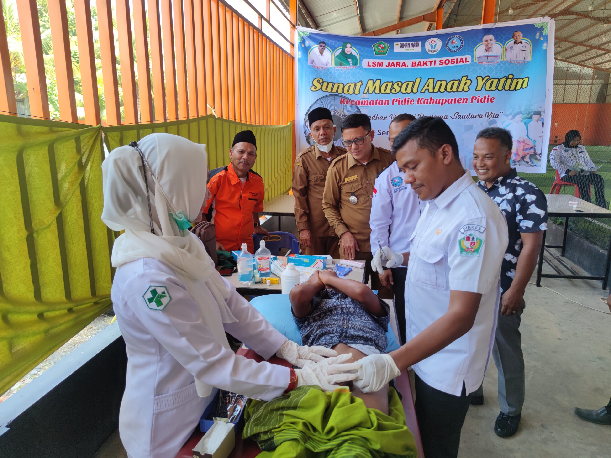 Sigli – Dewan Pimpinan Cabang, (DPC), Lembaga Anti Narkoba, (LAN), Kabupaten Pidie, khitan 15 anak yatim dalam Kabupaten Pidie, di lapangan Futsal Suman Mart Kota Sigli, Senin, (19/4/2023).