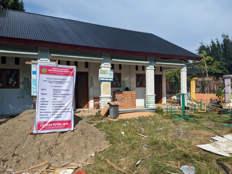 Sigli – Proyek pembangunan rehab Taman Kanak-kanak Negeri, (TKN), Kalee, di Gampong Batee, Kecamatan Muara Tiga, Kabupaten Pidie, sudah berakhir masa kerjanya. Namun proyek tersebut belum rampung dikerjakan, padahal jika melihat pada papan proyek proyek tersebut harus selesai pada 18 September 2023.