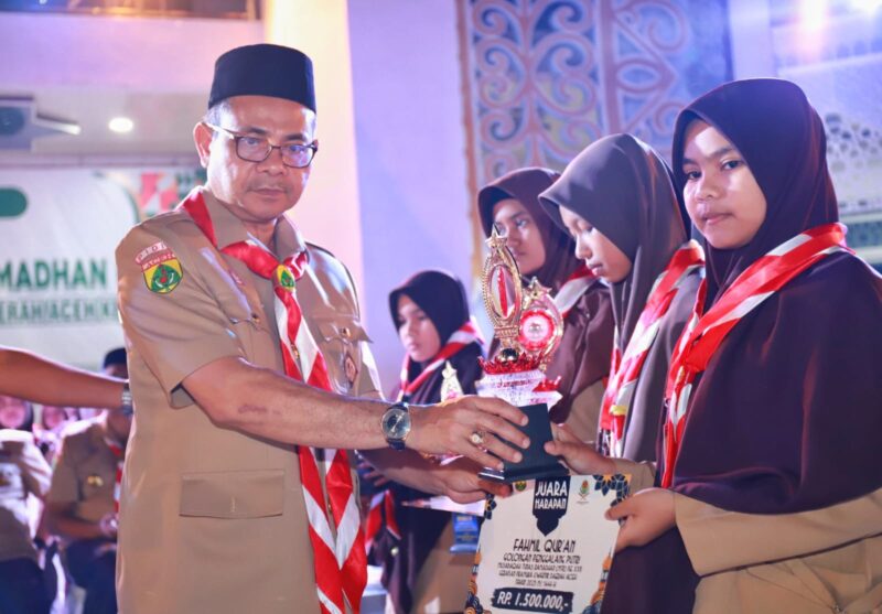 “Enam anggota pramuka akan diberangkatkan umrah, dari penegak putra juara 1 Tilawatil Quran Putra Zamil Ghifari dari Banda Aceh, juara 1 Khattil Quran Muhammad Fikri dari Bireun, juara 1 Tahfizh Quran putra Riadhil Jannatul Firdaus dari Banda Aceh. Sementara penegak putri Syifa Ruchina juara 1 Tilawatil Quran dari Banda Aceh, juara 1 Khattil Quran putri Fikra Adila dari Aceh Utara, dan Juara 1 Tahfizh Quran putri Lathifatul Yusra dari Aceh Jay.” Kata Koordinator Dewan Hakik Baharuddin, S.Ag.