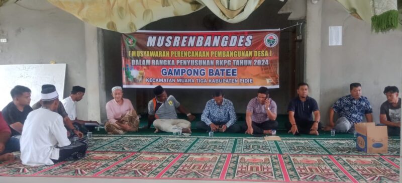 Sigli – Musyawarah Perencanaan Pembangunan Desa, (Musrenbangdes), Gampong Batee, Kecamatan Muara Tiga, Kabupaten Pidie, yang digelar di Meunasah setempat, Kamis, (7/12/2023), melahirkan beberapa prioritas pembangunan tahun 2024 nanti.