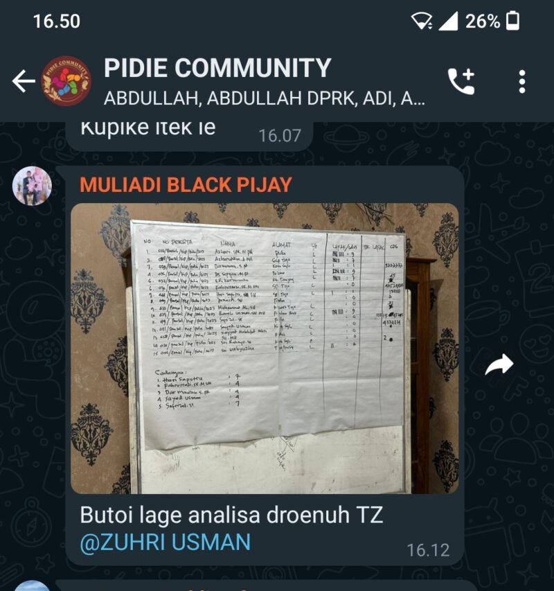 Informasi yang beredar di grup WA Pidie Community tersebut lengkap nama dan nilainya. Bahkan Komisi I Dewan Perwakilan Rakyat Kabupaten, (DPRK), setempat secara resmi belum mengumumkan terkait kelulusan mereka.