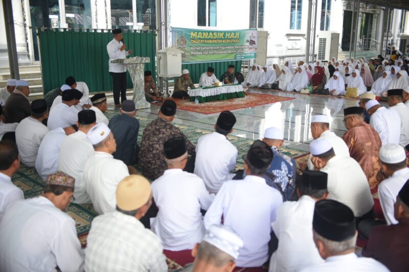 Aceh Utara – Penjabat Bupati Aceh Utara diwakili Asisten I Setdakab Dayan Albar, SSos, MAP, membuka kegiatan manasik haji dipusatkan di Masjid Raya Bujang Salim Krueng Geukueh, Kecamatan Dewantara, Sabtu, (20/5/2023).