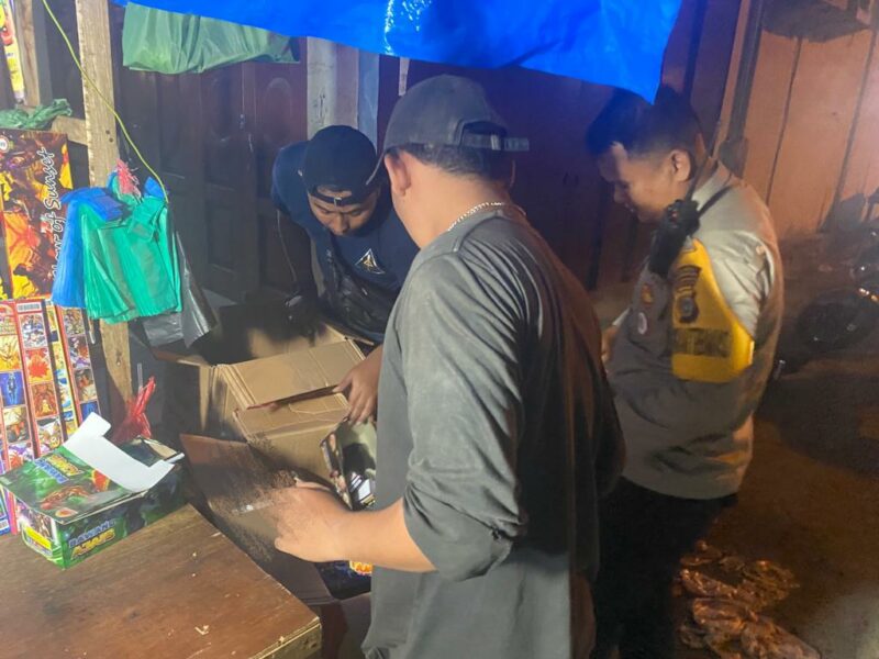 Lhokseumawe.Thetime23.com. Sejumlah petasan berhasil diamankan Personel Polsek Muara Dua, Kota Lhokseumawe, dari pedagang kembang api di kawasan Keudee Cunda, Sabtu, (25/3/2023). Petasan yang diamankan jenis mercon cabe dan petasan luncur.