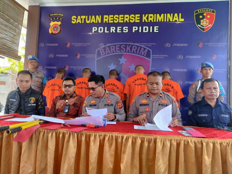 Sigli – Kepolisian Resor, (Polres), Pidie berhasil mengungkap pencurian kabel milil Perusahaan Listrik Negara, (PLN), Sigli. Ada lima tersangka berhasil diamankan dan hal itu terungkap saat Polres setempat menggelar konferensi pers di Mapolres, Jumat, (4/8/2023).