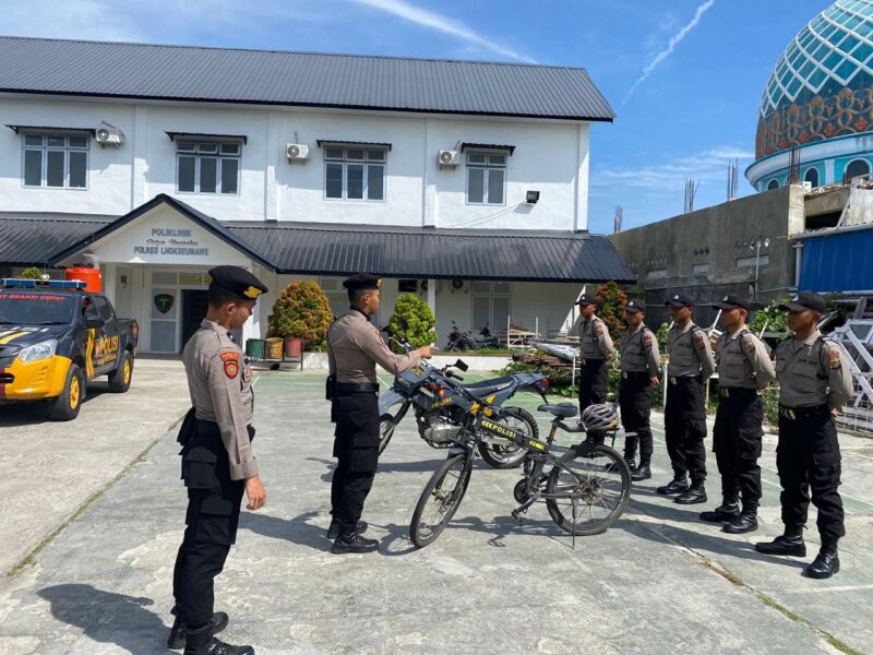 Lhokseumawe – Tim Unit Reaksi Cepat (URC) Satuan Samapta Polres Lhokseumawe memberikan pelatihan kepada para siswa Sekolah Polisi Negara (SPN) Polda Aceh angkatan 2023 tentang patroli bersepeda, Selasa (6/6/2023).