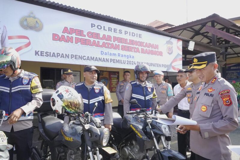 Sigli – Polres Pidie menggelar apel pengecekan Alat Material Khusus (Almatsus) Polri atau sarana dan prasarana (Sarpras) dinas Kepolisian di halaman Mapolres setempat, Rabu pagi (26/7/2023).