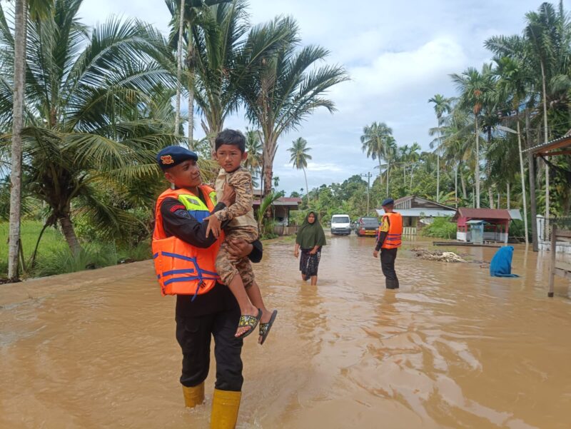 Personel Brimob Polda Aceh Bantu Korban Banjir di Trumon