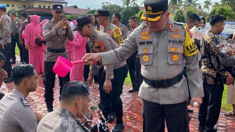 Aceh Utara – Polres Aceh Utara menggelar upacara laporan kenaikan pangkat bagi 36 personel Polres dan Personel Kompi 4 Yon B Pelopor Sat Brimob Polda Aceh, Rabu (3/1/2023) dipimpin Kapolres Aceh Utara AKBP Deden Heksaputera S, S.I.K.