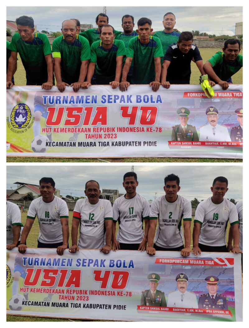 Sigli – Kesebelasan Putra Kalee Gampong Batee, diluar dugaan mampu menjungkalkan Muspika Muara Tiga, 1-0, pada laga lanjutan Turnamen Usia 40, dalam rangka memperingati Hari Ulang Tahun, (HUT), Kemerdekaan Republik Indonesia, (RI), ke 78 di lapangan Gampong Suka Jaya, Senin, (14/8/2023).