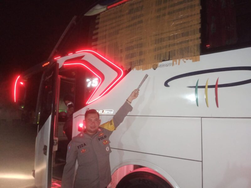 Aceh Utara – Satu unit bus penumpang Putra Pelangi dilempari batu oleh kawanan remaja di kawasan Gampong Mns. Nga, Kecamatan Lhoksukon, Aceh Utara, Jumat malam, (7/4/2023).