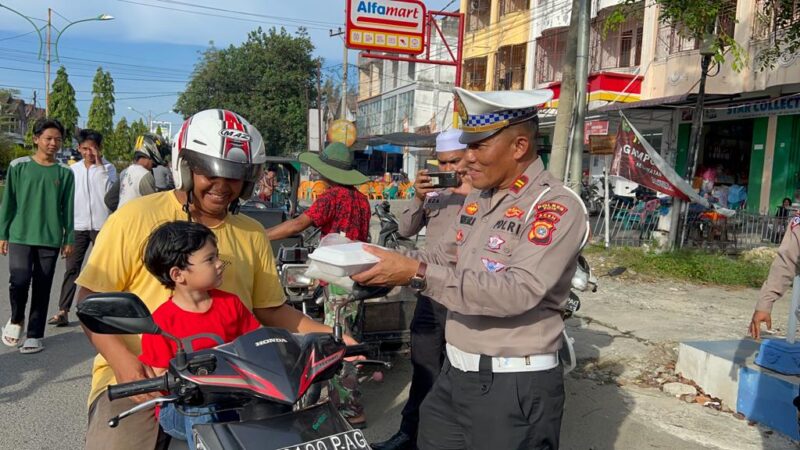 Satlantas Polres Pidie Bagi Takjil Kepada Pengguna Jalan