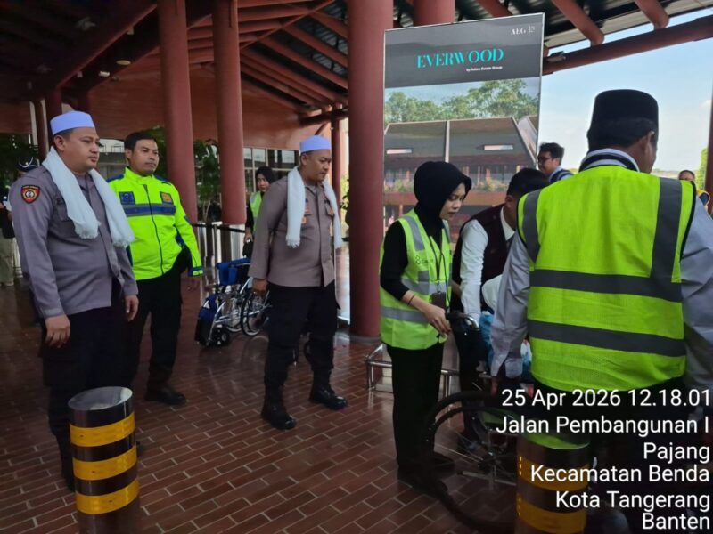 TheTime23.my.id||TANGERANG – Satuan Lalu Lintas Polresta Bandara Soekarno-Hatta mengawal keberangkatan jemaah haji Kloter 4 Banten dari Asrama Haji Cipondoh menuju Bandara Soetta pada Sabtu (25/4) siang.