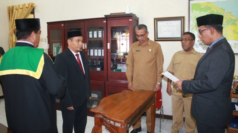 Sigli – Pemerintah Kabupaten Pidie melantik Kepala Dinas Kependudukan dan Pencatatan Sipil, (Kadisdukcapil), Baihaqi. Pelantikan itu lakukan oleh Sekretaris Daerah Kabupaten, (Sekdakab), setempat Drs Samsul Azhar atas nama Pejabat Bupati Pidie, di ruang kerja Sekdakab Pidie, Selasa, (23/4/2024)..