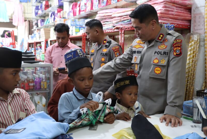 Aceh Utara – Kapolres Aceh Utara AKBP Deden Heksaputera S, S.I.K menyempatkan waktunya memboyong 25 orang anak yatim piatu dan anak kurang mampu ke toko pakaian di Lhoksukon untuk dibeli baju lebaran sesuai keinginan mereka masing- masing, Kamis (13/4/2023).